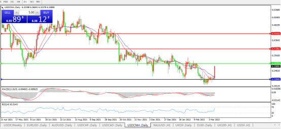 备选策略:在6.3650之上,看涨,目标价位为6.4100,然后为6.4550。