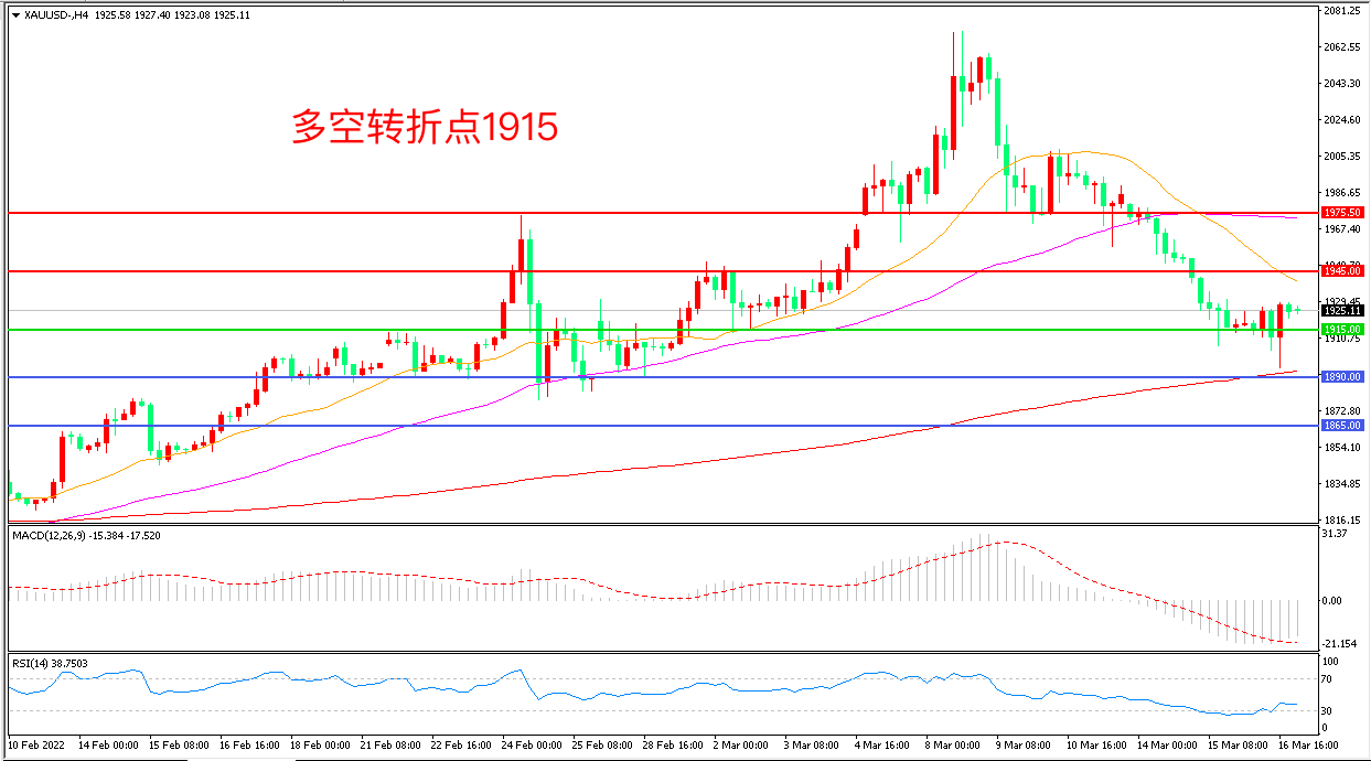 备选策略:在1915.00之下看跌,目标1890.00 1865.00