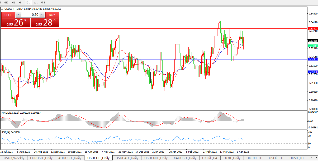 交易策略:0.9300上方看涨,目标0.9380、0.9500