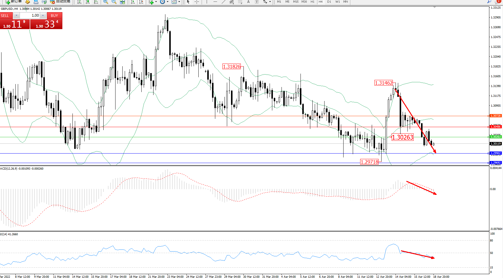 英镑美元GBPUSD ——4小时K线图显示: