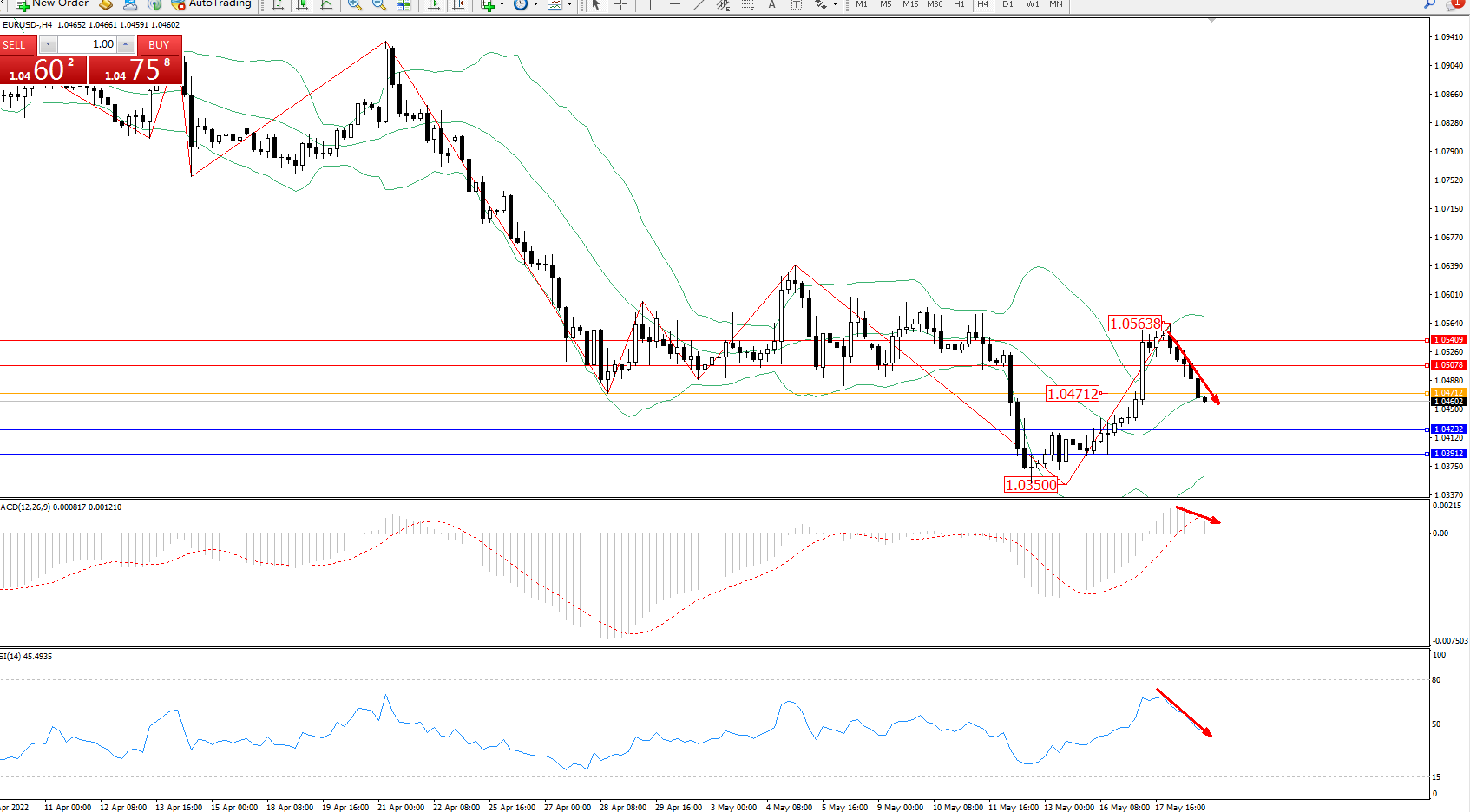 欧元美元EURUSD—4小时K线图显示: