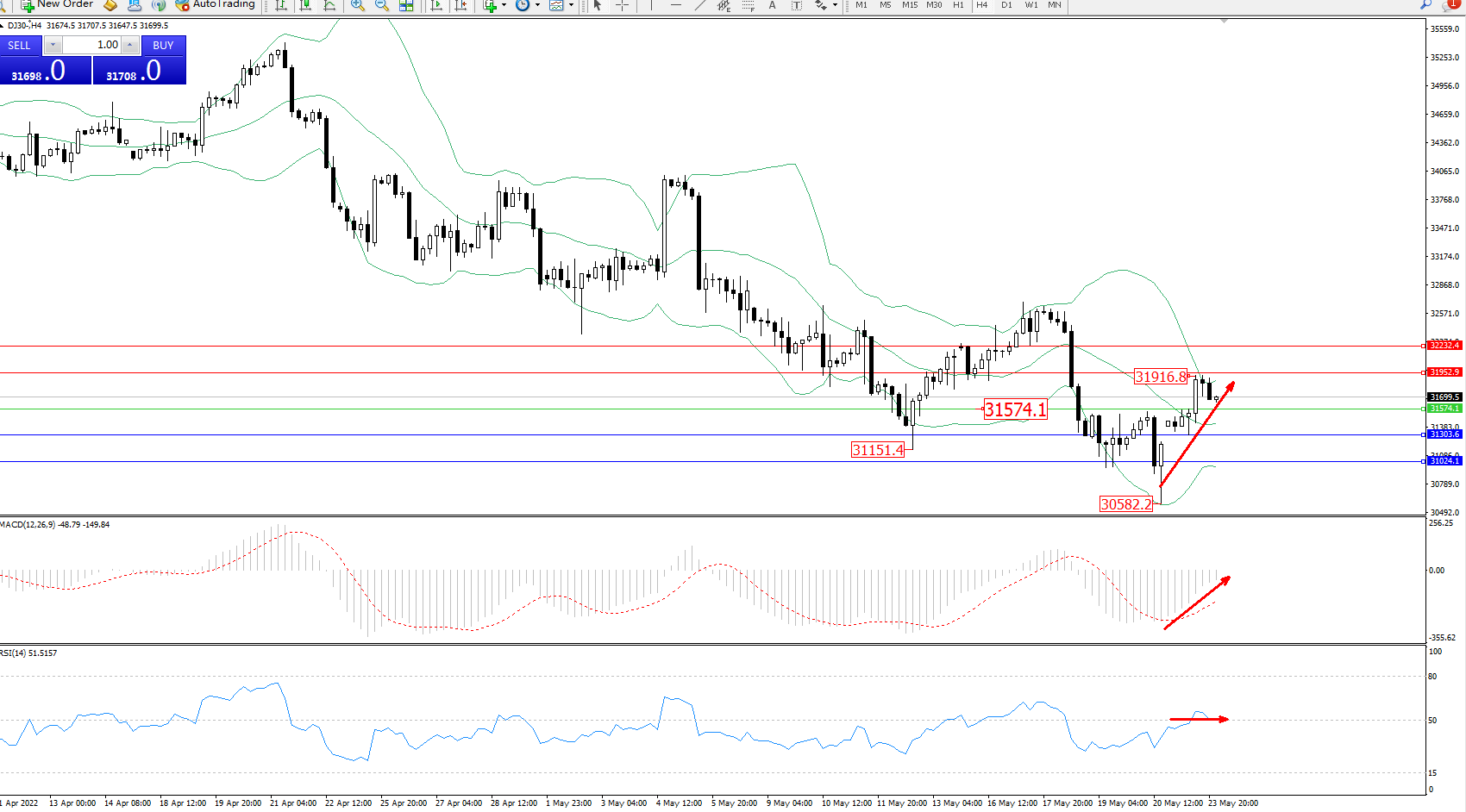 技术点评:低位多头动力强势反转震荡上扬,触及布林带指标上轨31916附近节点后开始整理,短期或维持在上轨附近徘徊,布林带指标呈收口走势持续中,MACD指标处于空头区域低位维持震荡上移至0轴线附近徘徊,RSI指标处于50均衡线附近窄幅整理中;