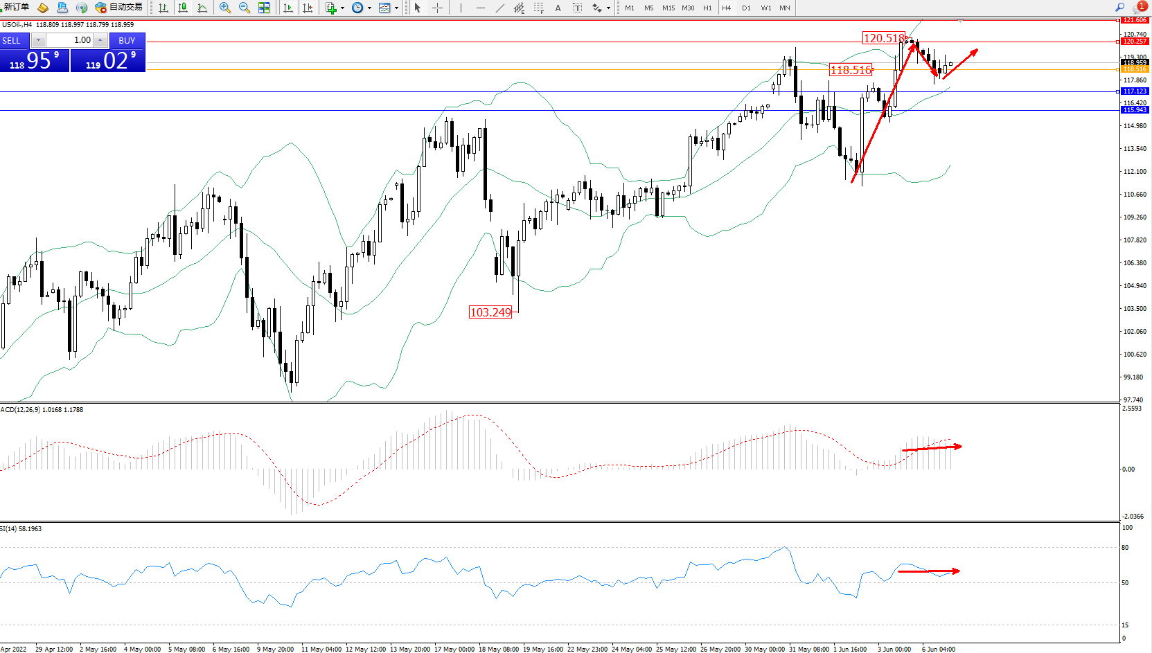 交易策略:118.516上方看涨,目标120.257、121.606