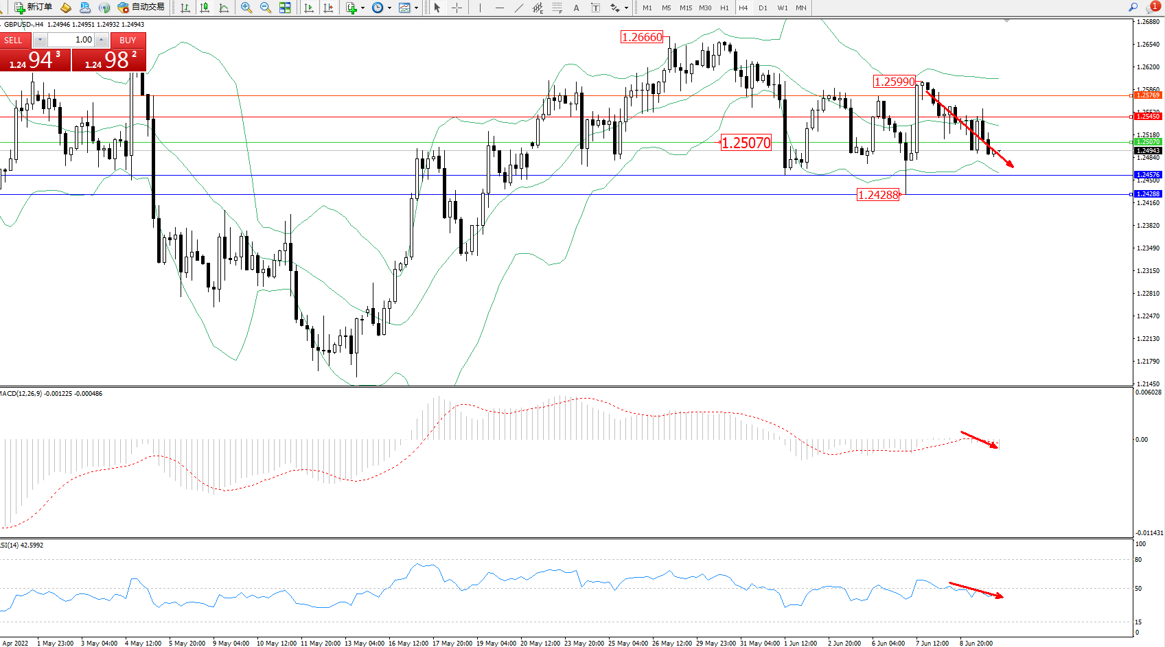 英镑美元GBPUSD ——4小时K线图显示: