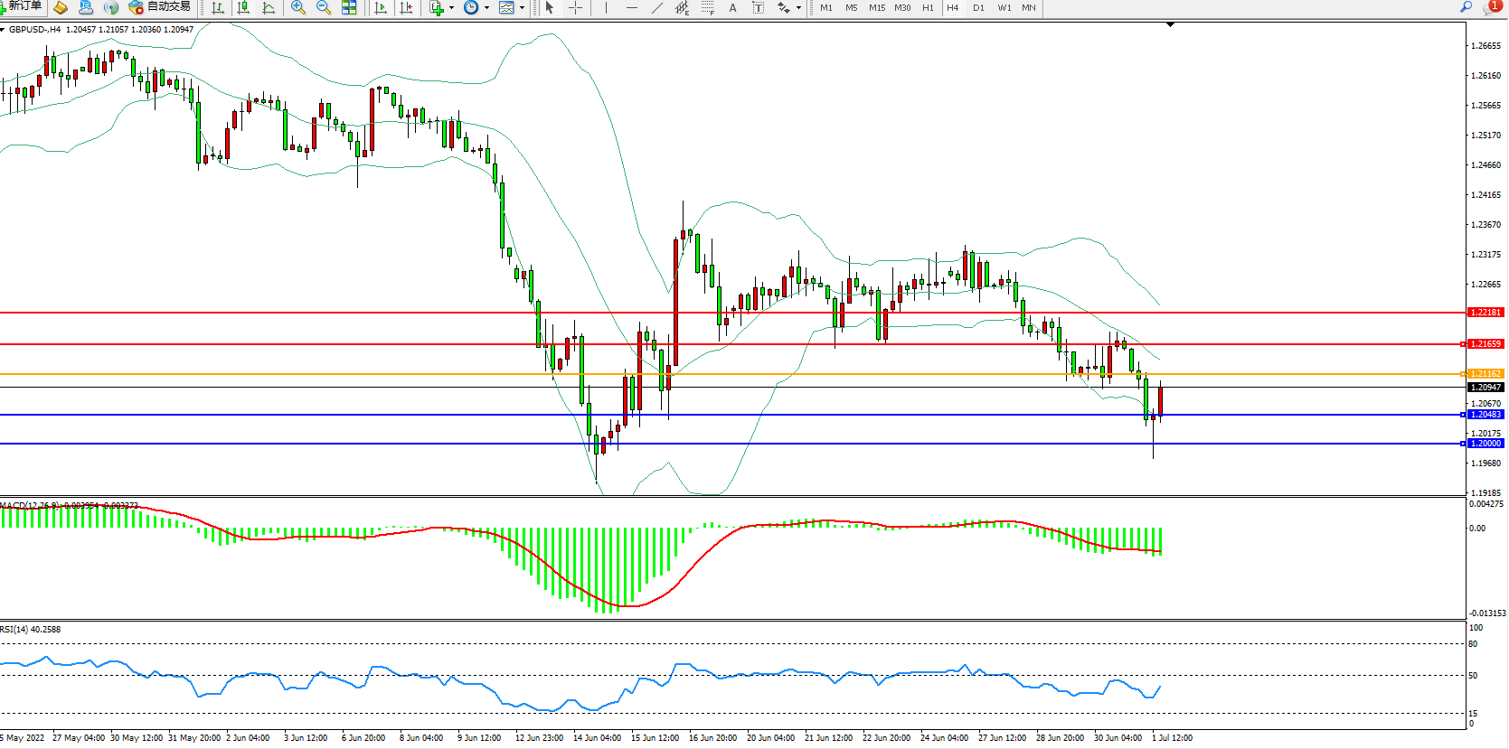 英镑美元GBPUSD ——4小时K线图显示: