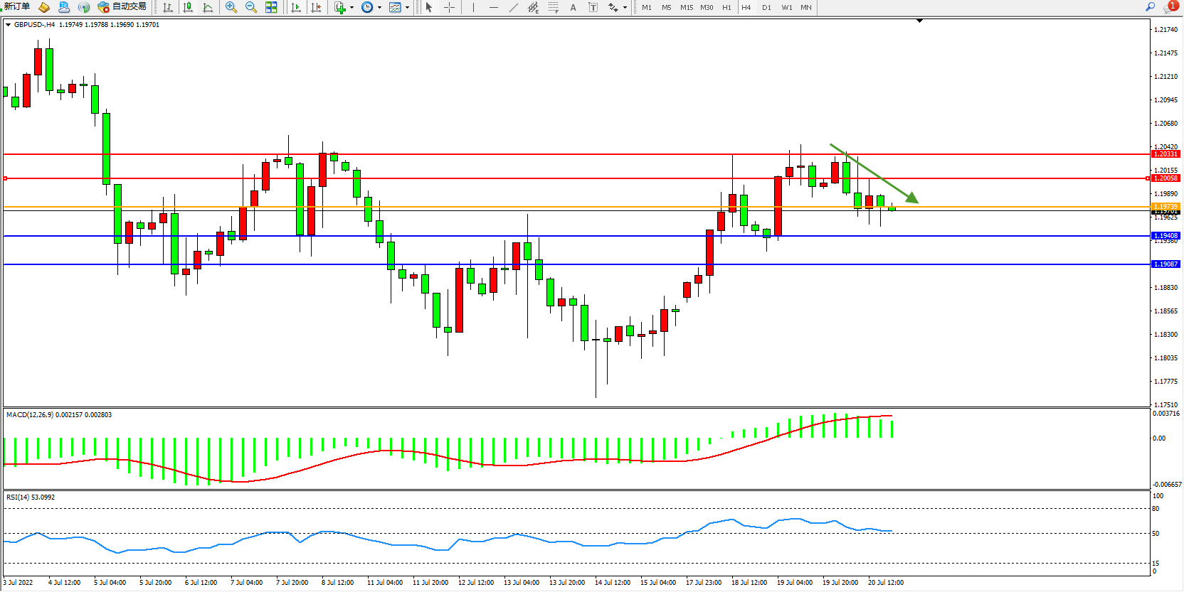 英镑美元GBPUSD ——4小时K线图显示: