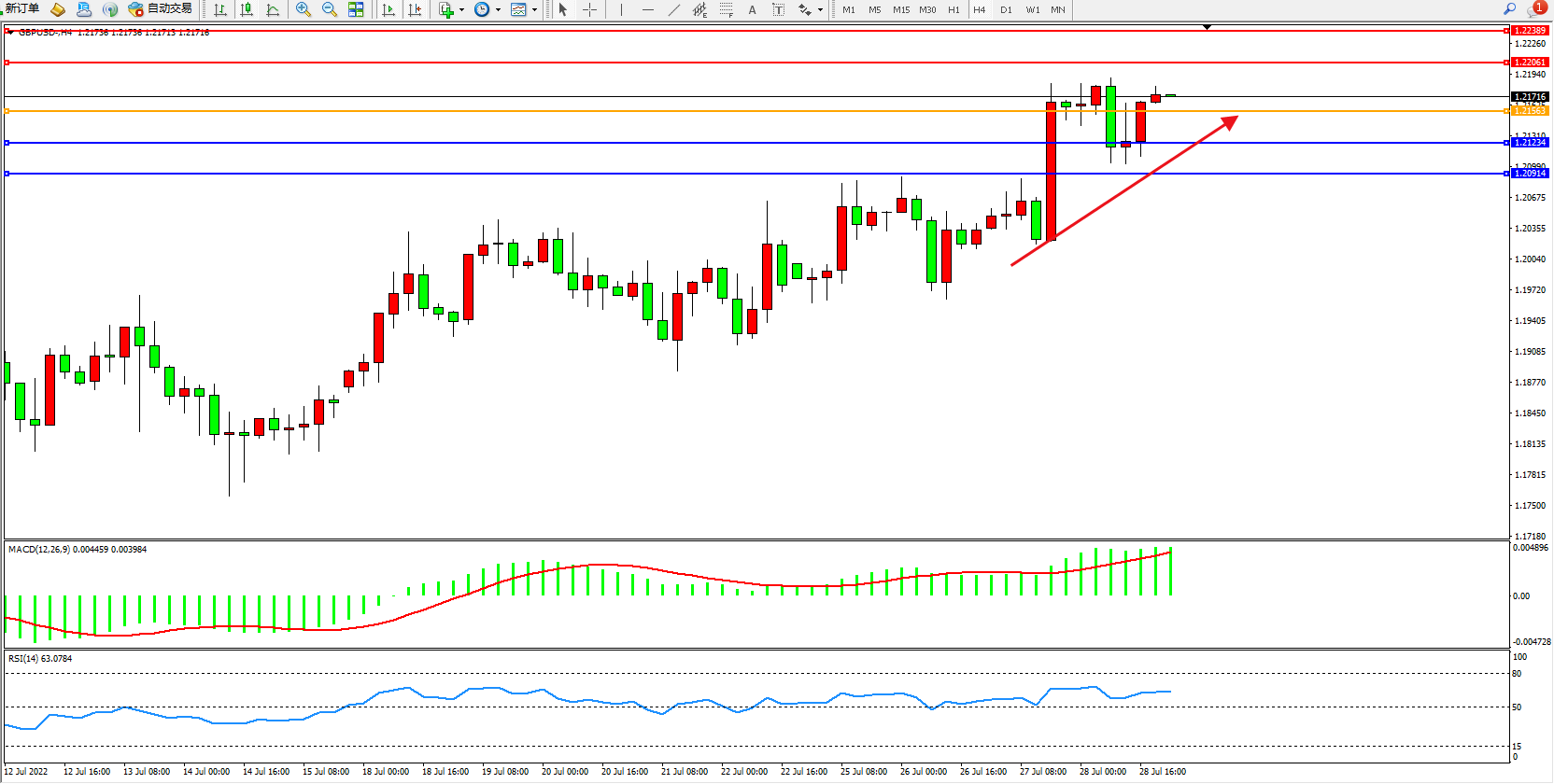 英镑美元GBPUSD ——4小时K线图显示: