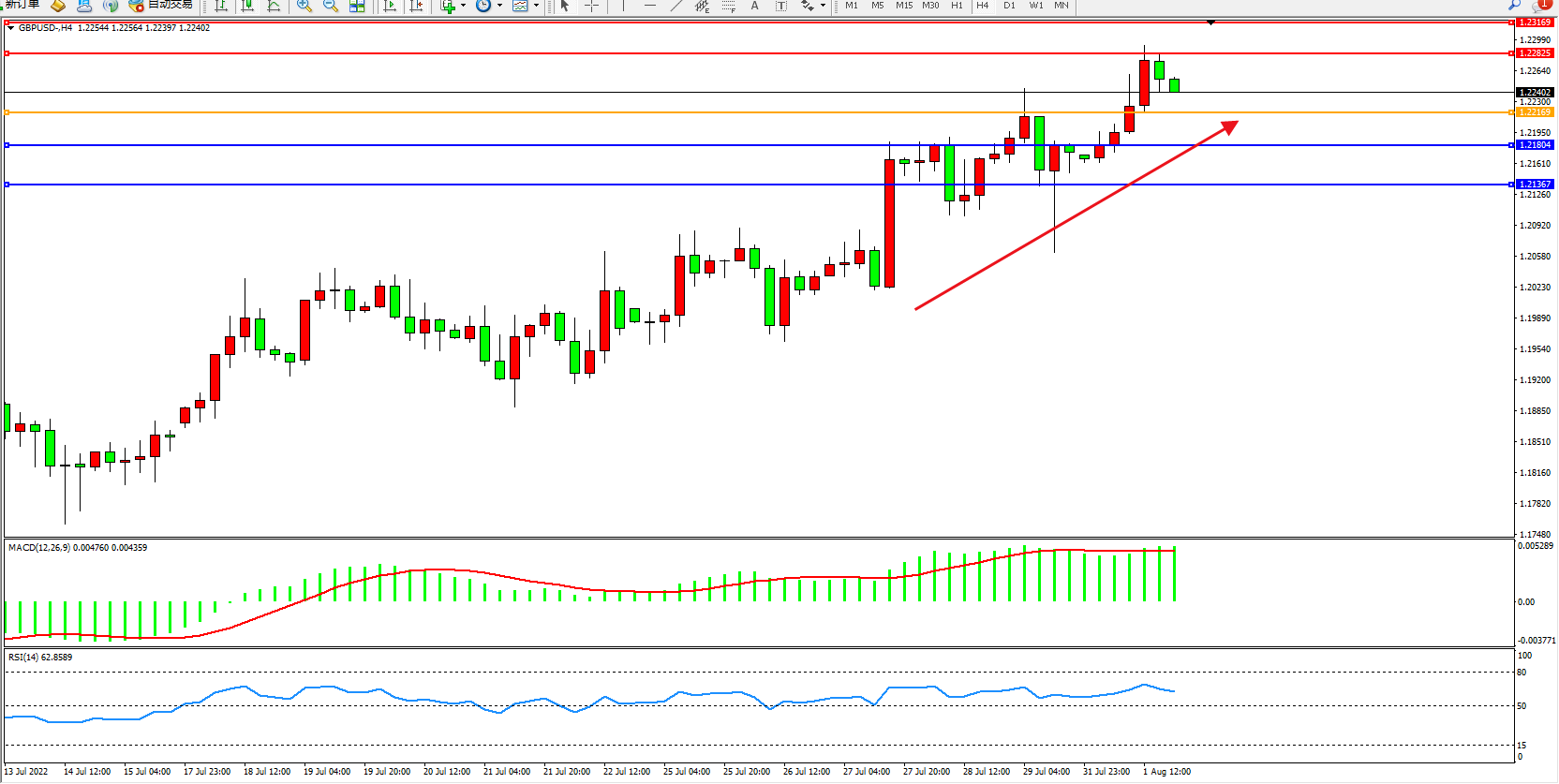 英镑美元GBPUSD ——4小时K线图显示: