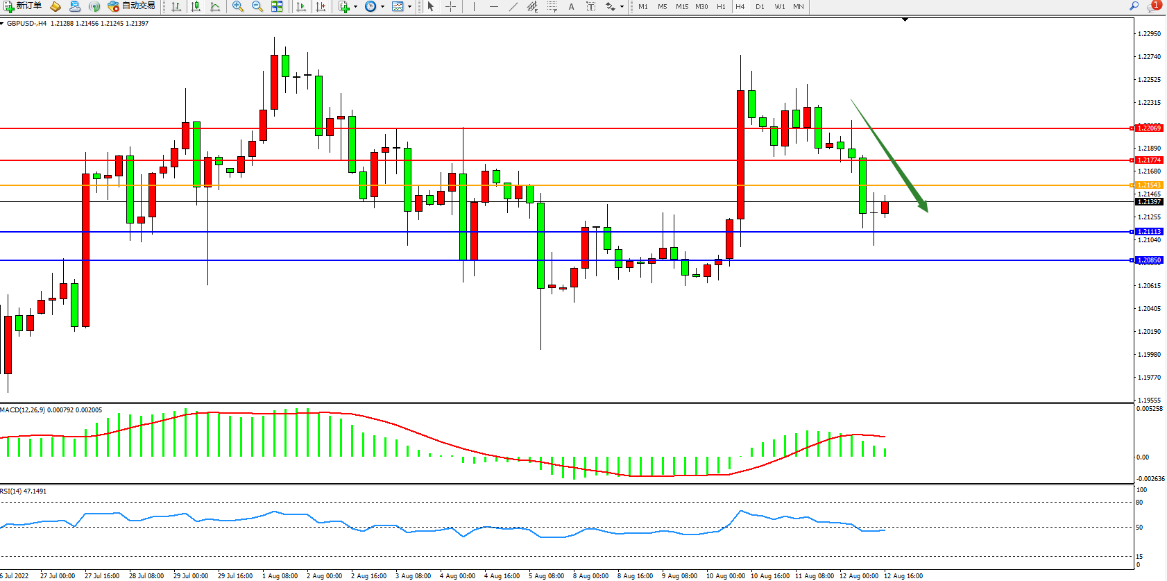英镑美元GBPUSD ——4小时K线图显示: