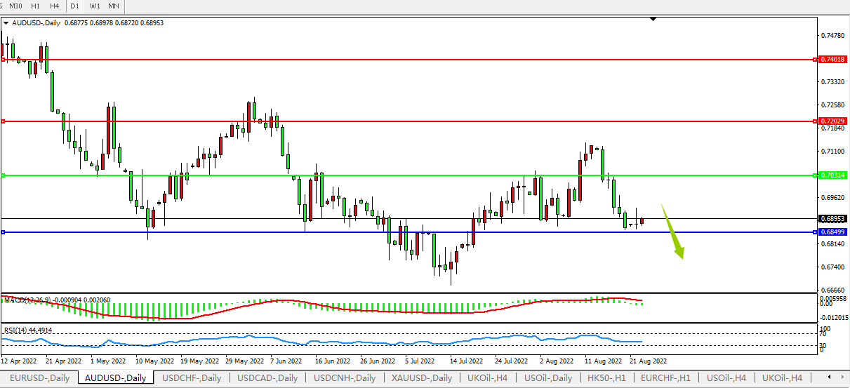 交易策略:0.7030下方看跌,目标0.6850、0.6700