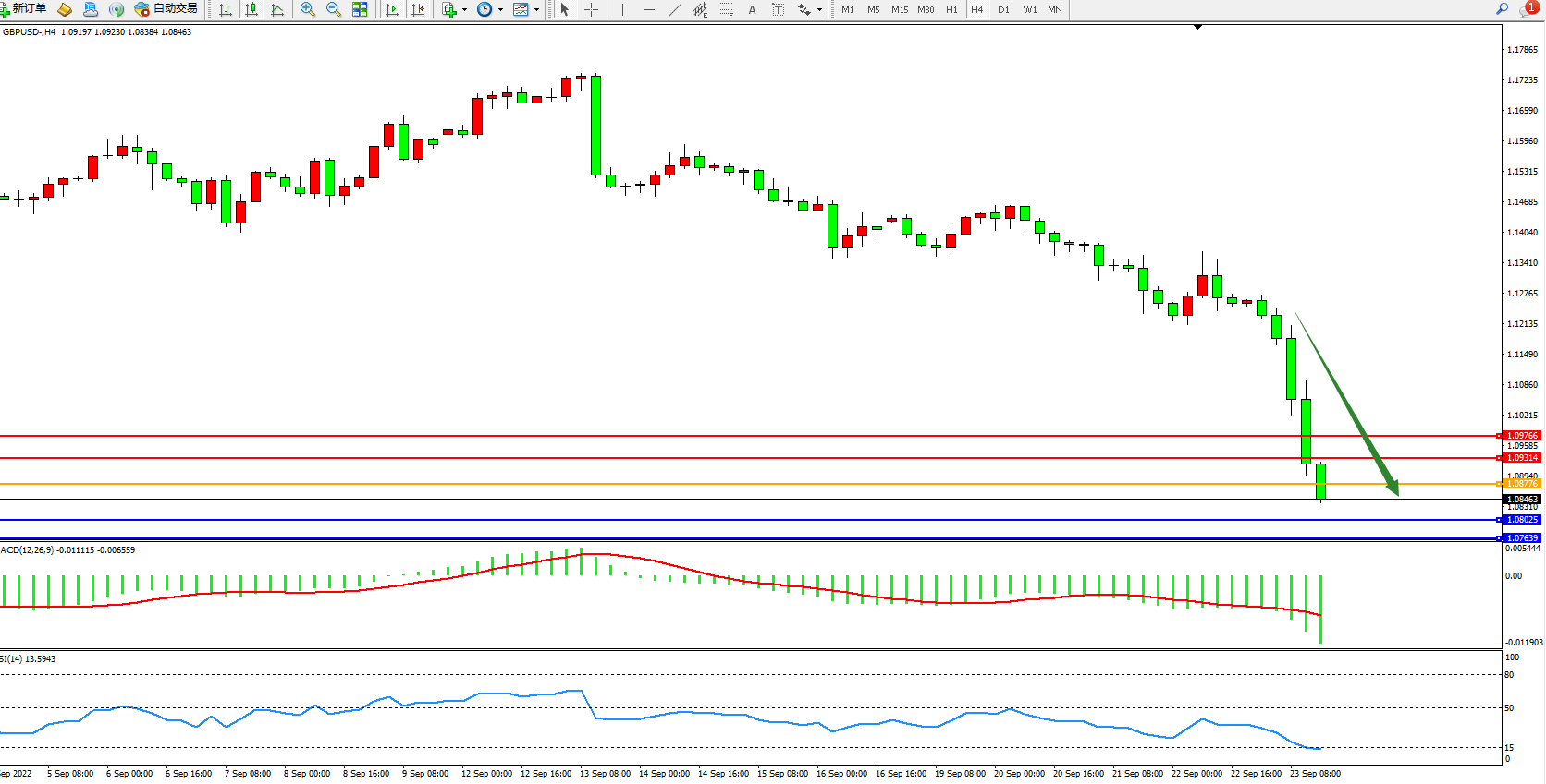 英镑美元GBPUSD ——4小时K线图显示: