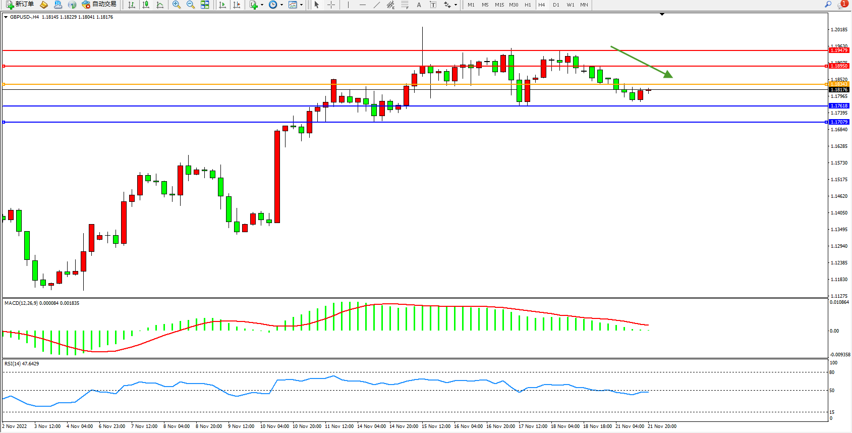 英镑美元GBPUSD ——4小时K线图显示: