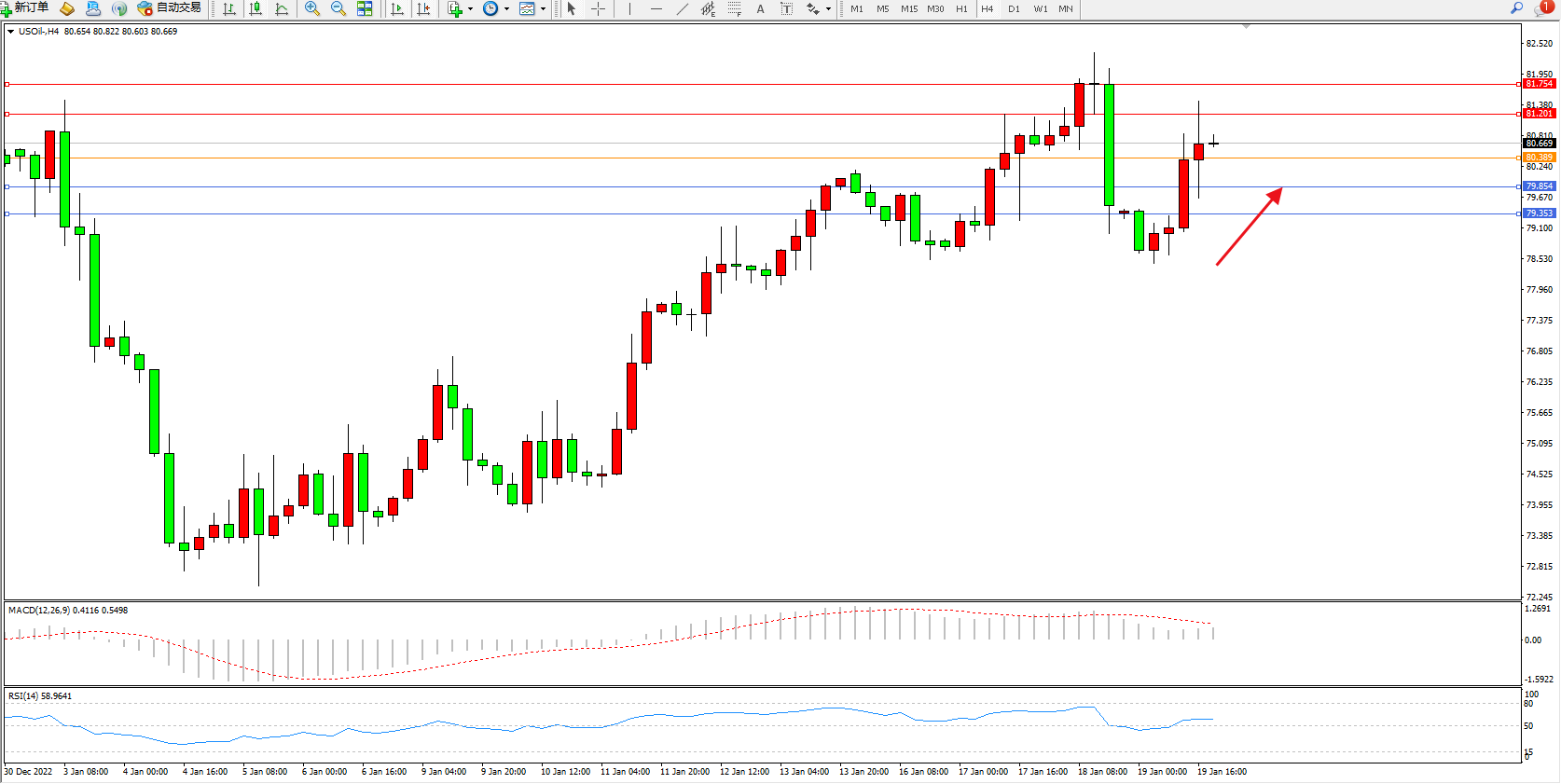 原油USOil——4小时K线图显示: