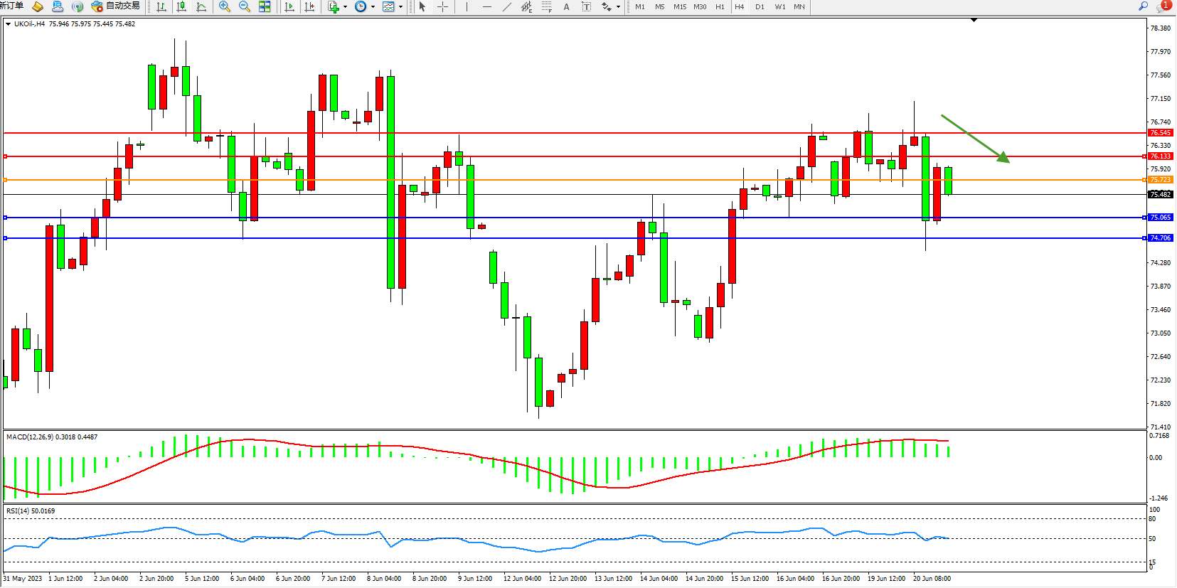 阻力位:76.133 76.545