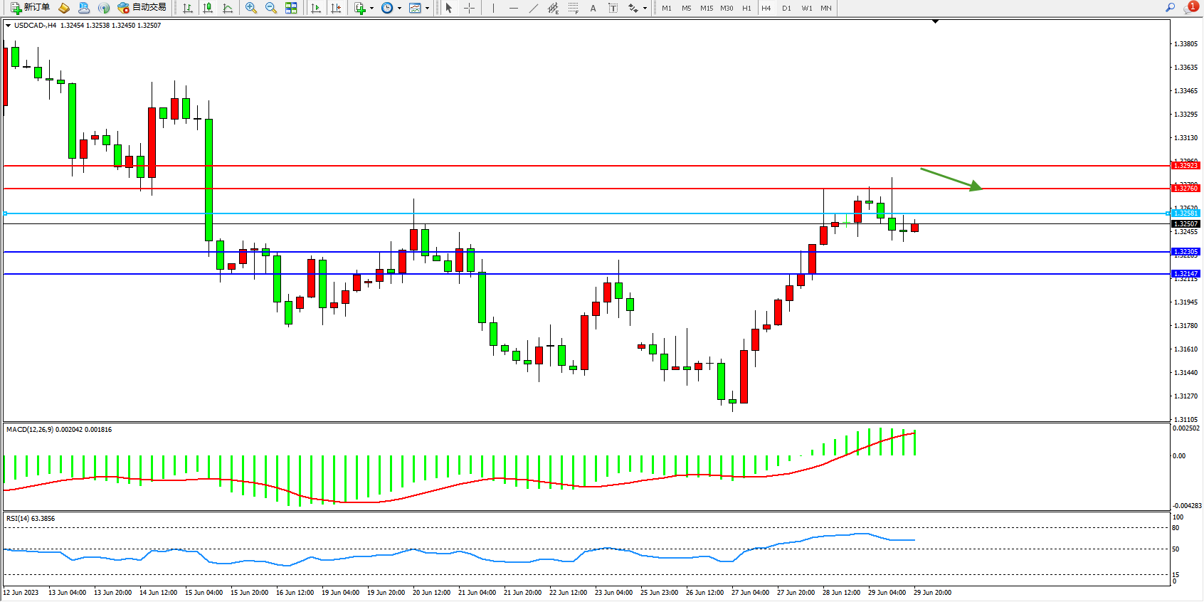 美元加元USDCAD——4小时K线图显示: