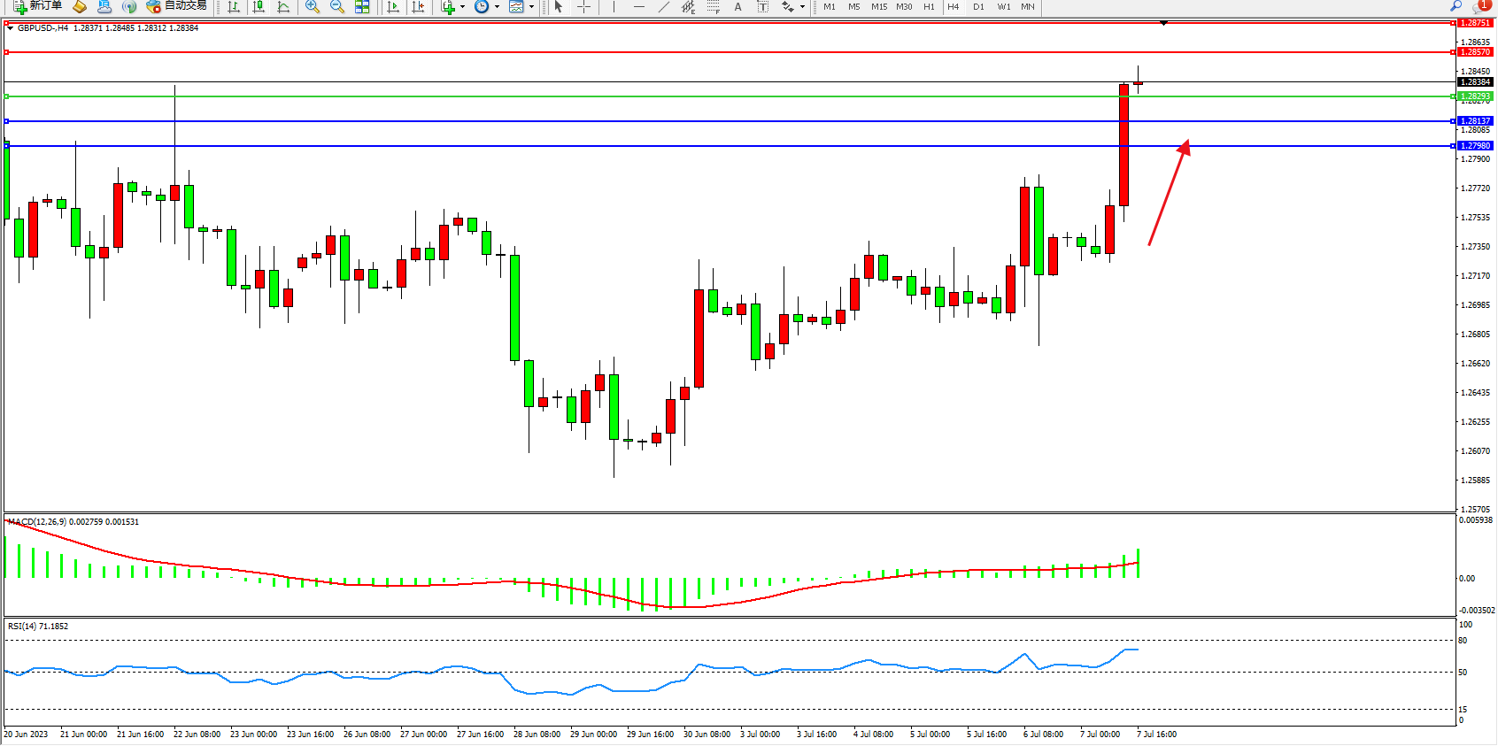 英镑美元GBPUSD ——4小时K线图显示: