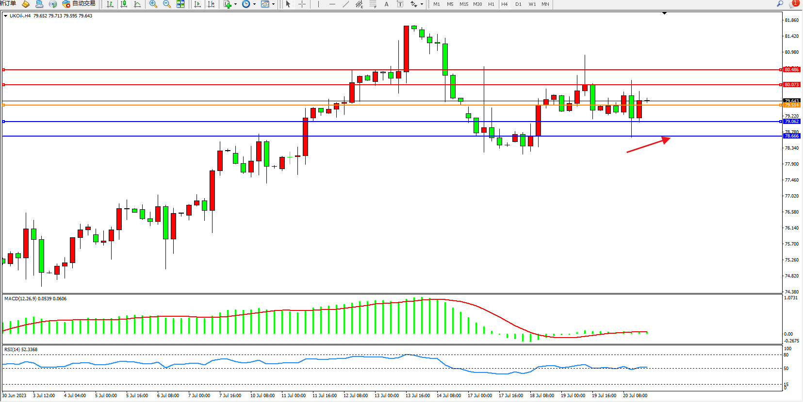 交易策略:79.514上方看涨,目标80.073  80.486