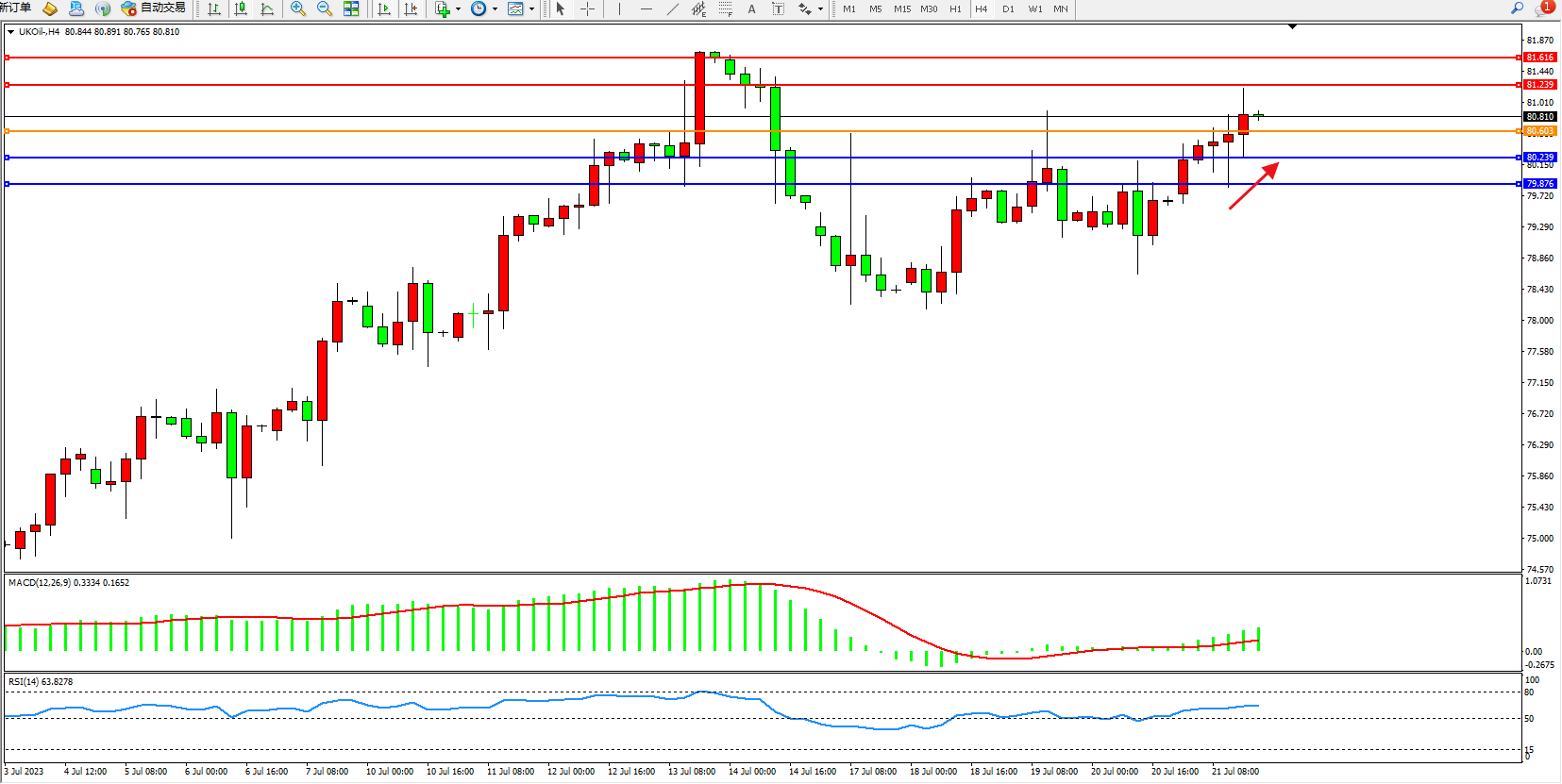 交易策略:80.603上方看涨,目标81.239 81.616