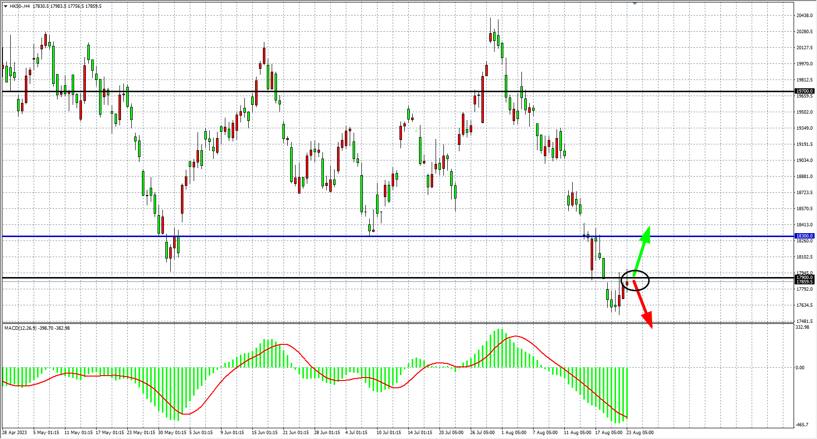 交易策略:17900    下方看跌,目标 17500  17200