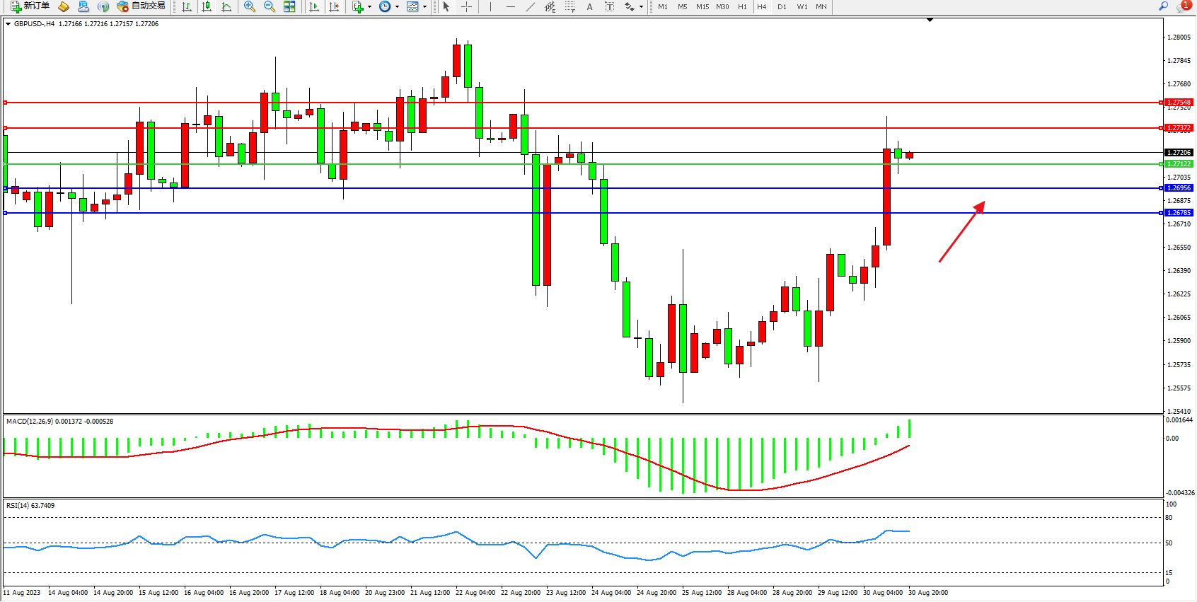 英镑美元GBPUSD ——4小时K线图显示: