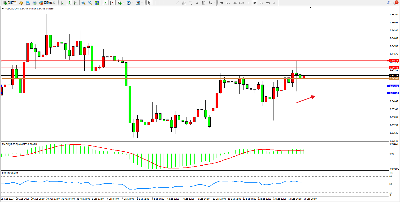 支撑位:0.64248  0.64154