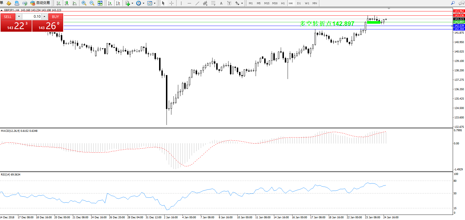 交易策略:142.897上方看涨,目标143.536143.962