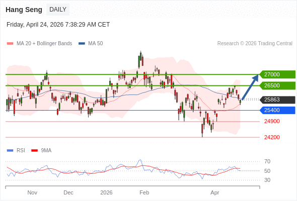 交易策略: 在 25400 之上,看涨,目标价位为 26500 ,然后为 27000 。