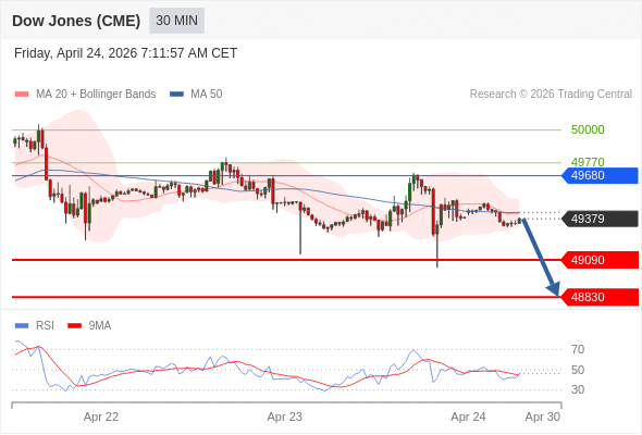 在 49680 之下,看跌,目标价位为 49090 ,然后为 48830 。