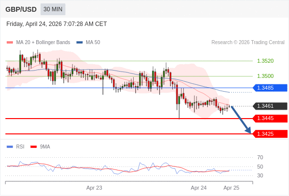 在 1.3485 之下,看跌,目标价位为 1.3445 ,然后为 1.3425 。