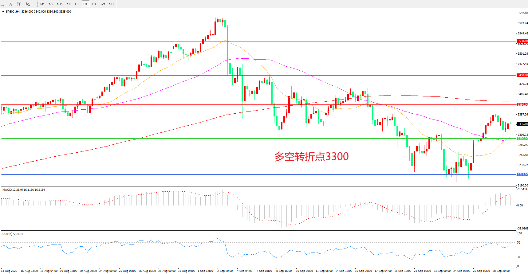 多空转折点:3300.00