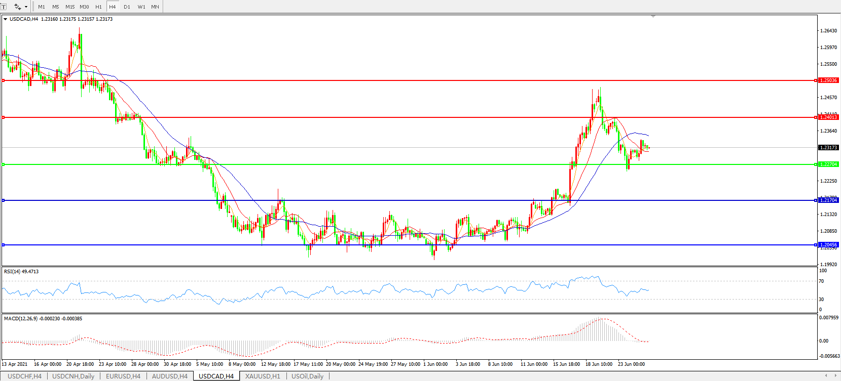 美元兑加元USDCAD    4小时图: