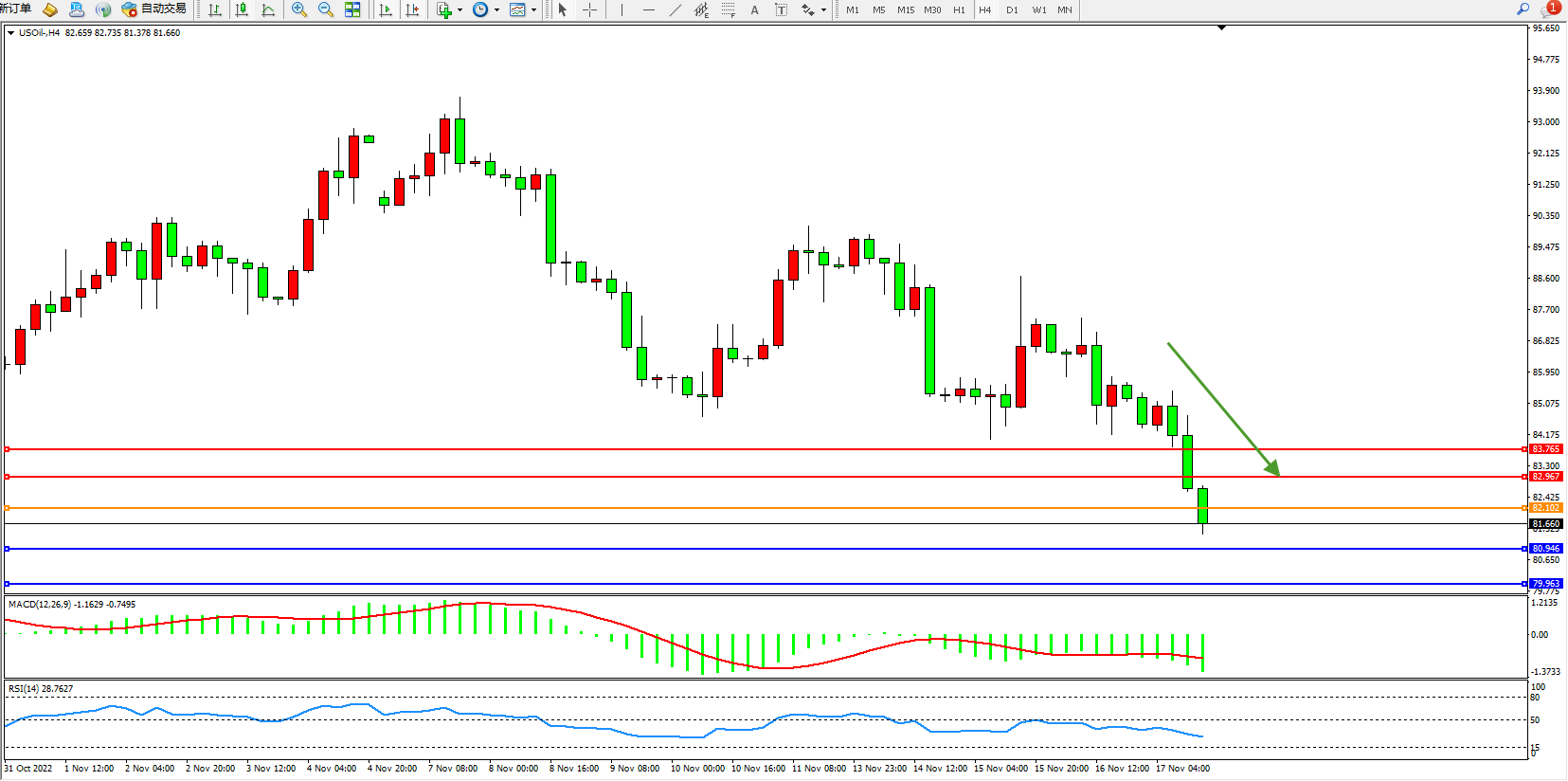 交易策略:82.102下方看跌,目标80.946、79.963