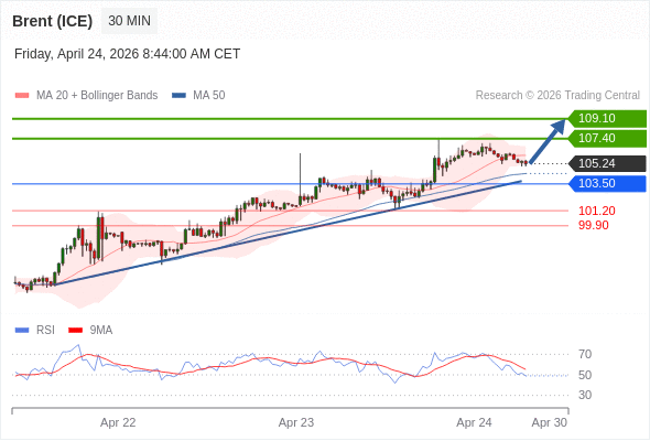 在 103.50 之上,看涨,目标价位为 107.40 ,然后为 109.10 。